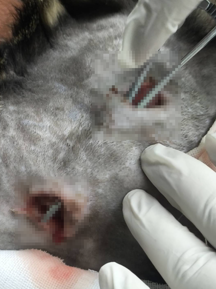 △狸花猫“胖子”被找到时身上的蚁合伤