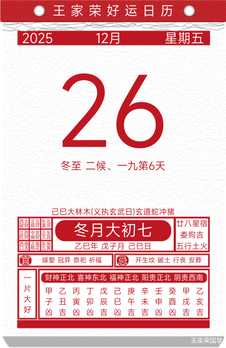 逐日通书福祸宜忌2025年12月26日