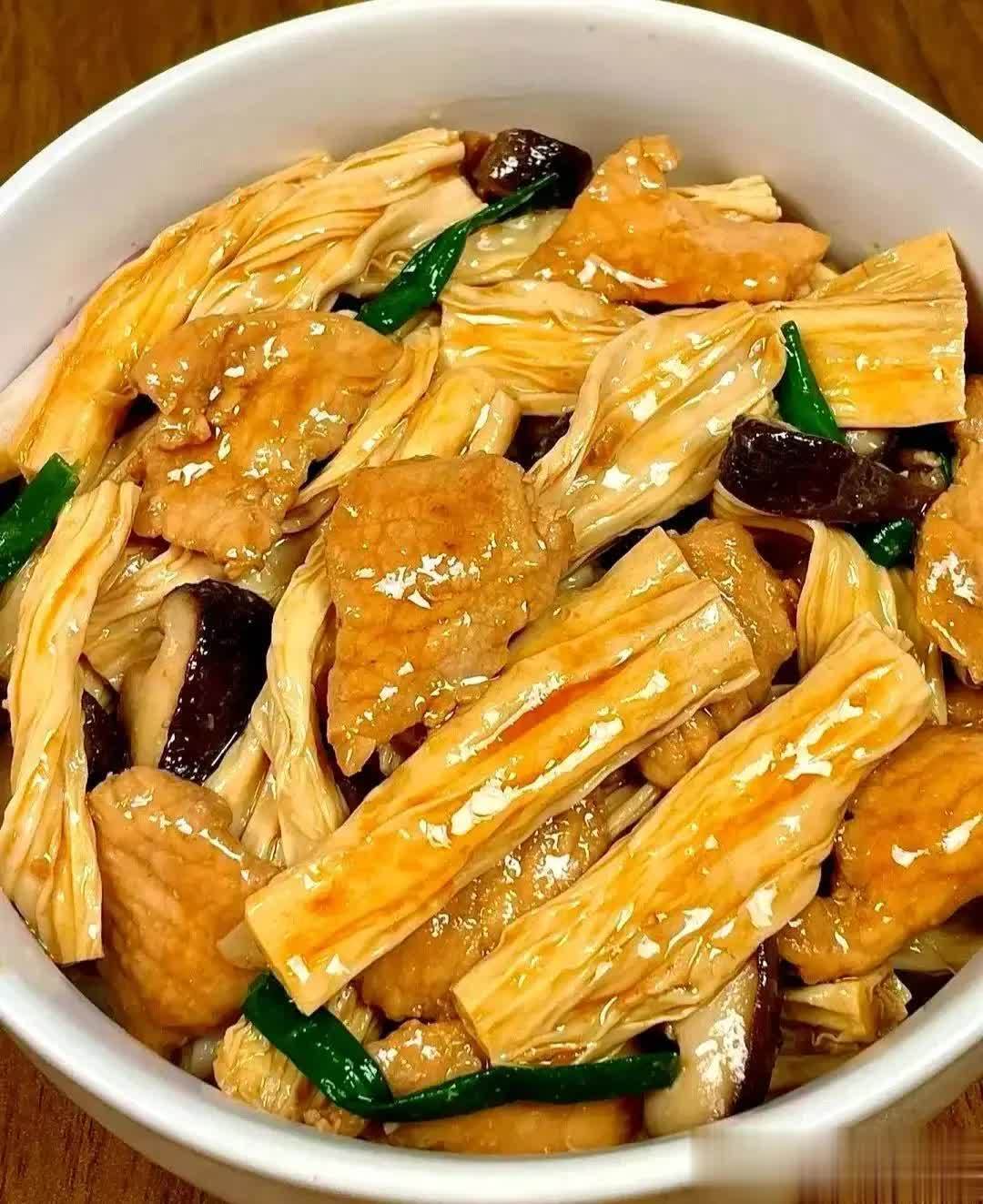 四、腐竹香菇炒肉片