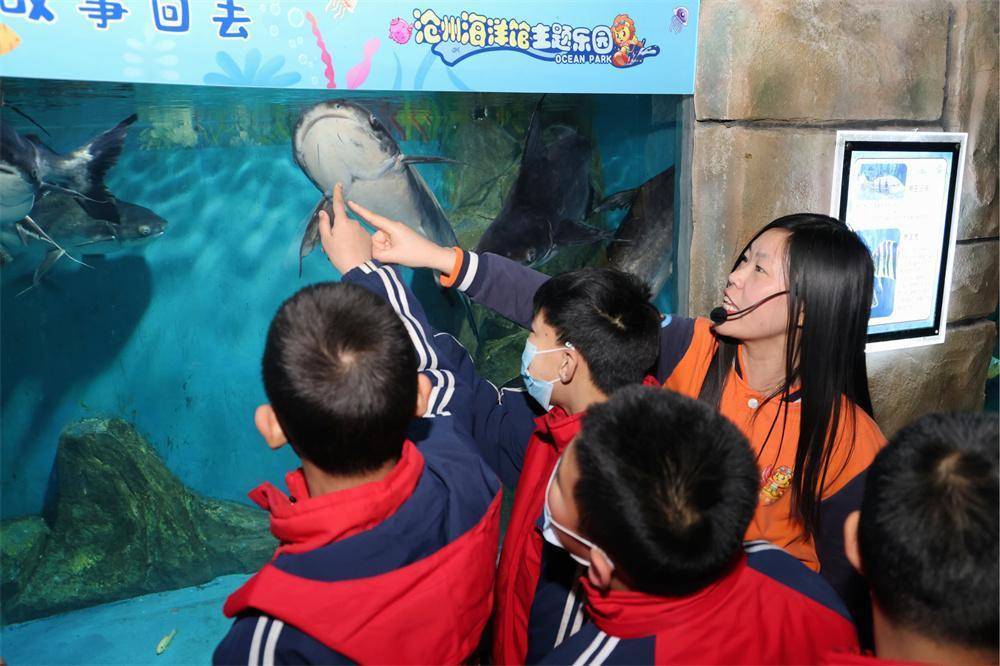 特陶冶校的孩子们在沧州海洋馆研学。杨洋摄日前,沧州市运河区残疾东谈主聚拢会、沧州海洋馆聚拢开展“心曙光光 研学同业”公益研学活动,组织沧州市运河区福禾相当评释注解学校的孩子们走进海洋馆,参不雅海底全国,探索生物各样性的奥妙。